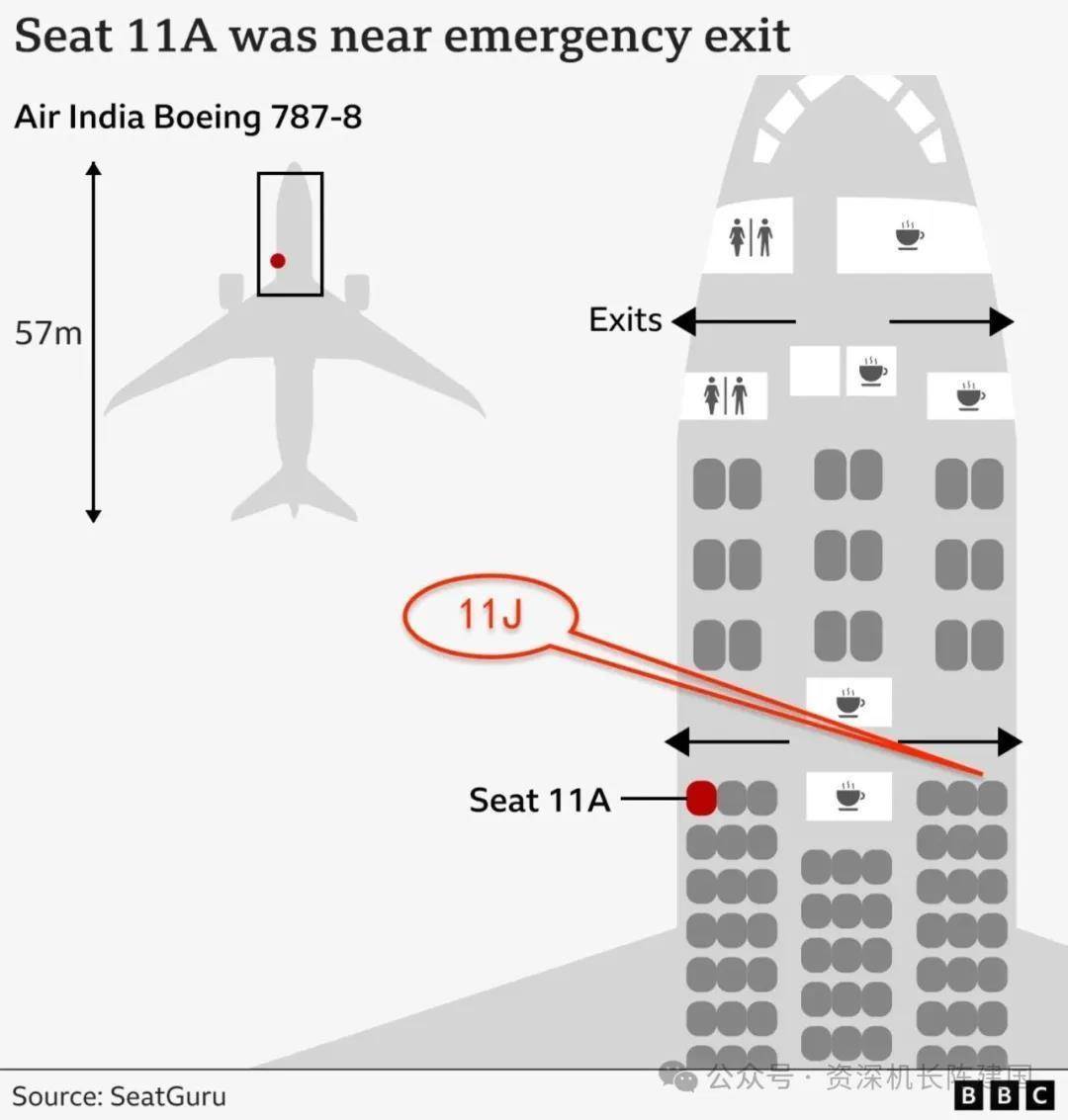 据了解,这位幸存者是英国籍男子维什瓦斯库马尔·拉梅什,他事发时坐在11A座位。客舱分布图显示,该位置紧邻舱门。有网友认为,该男子能幸存的原因可能是所坐的座位较其他位置更安全。